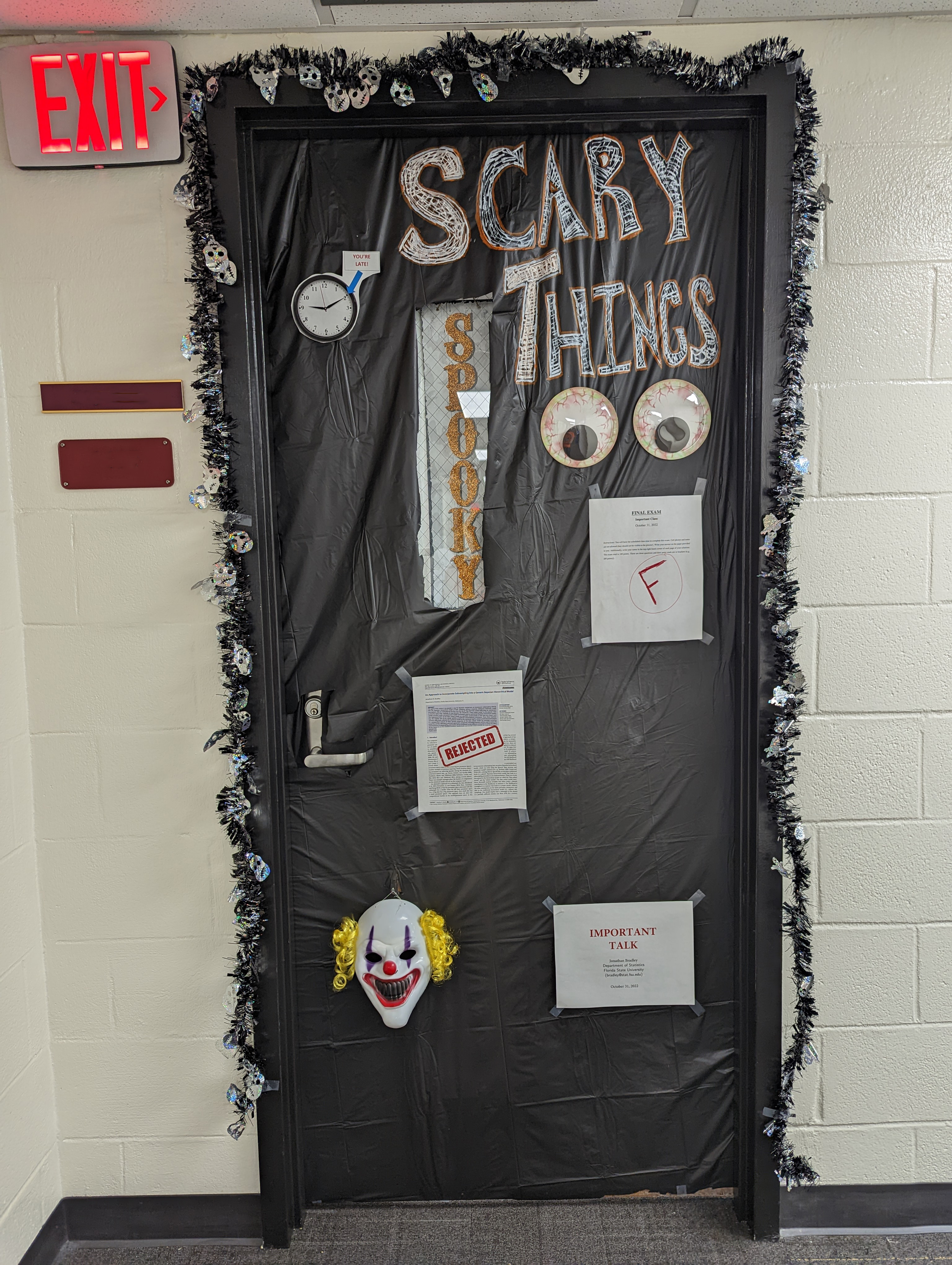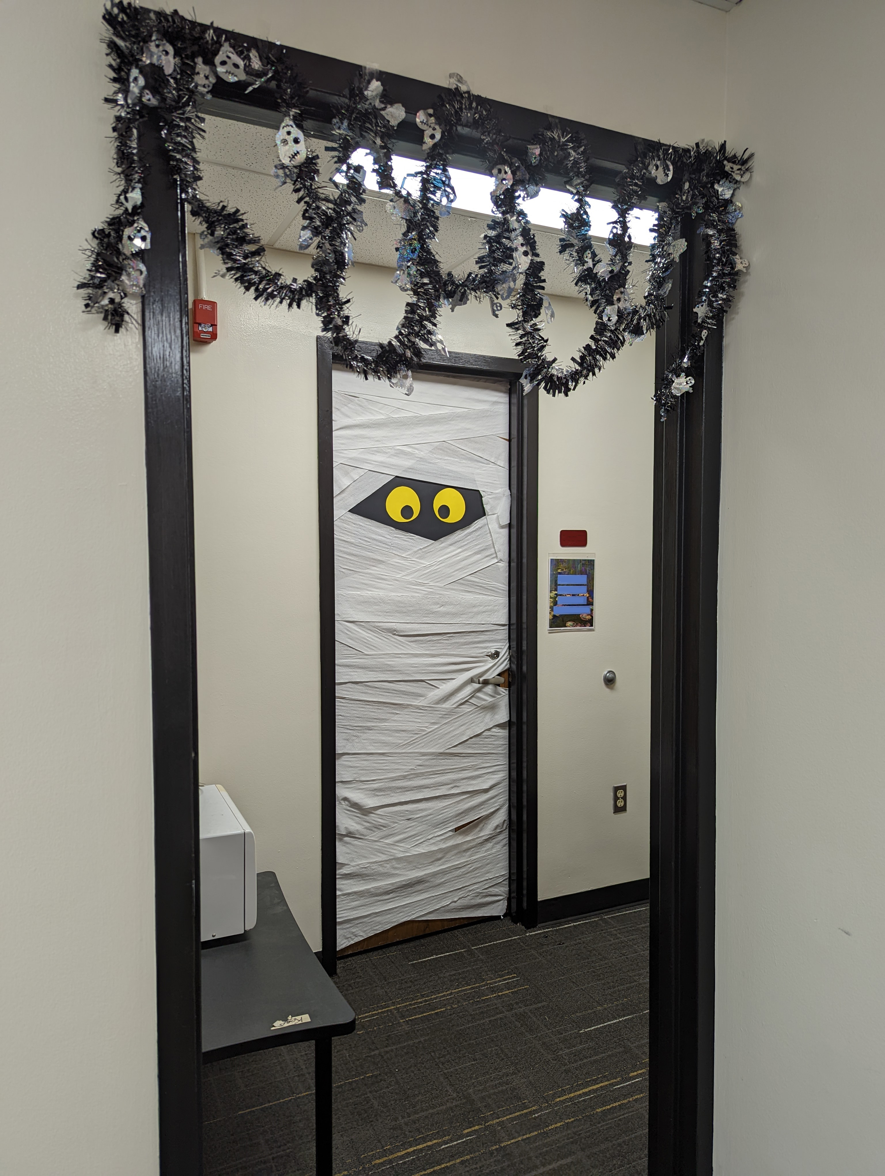 Welcome to the 2022 Halloween Door Decorating Contest page! Here you can scroll through the list of doors and vote for your favorite! Photos of the full doors are on the left and photos on the right are some details that stood out. The winner(s) will be announced on Monday, October 31st!